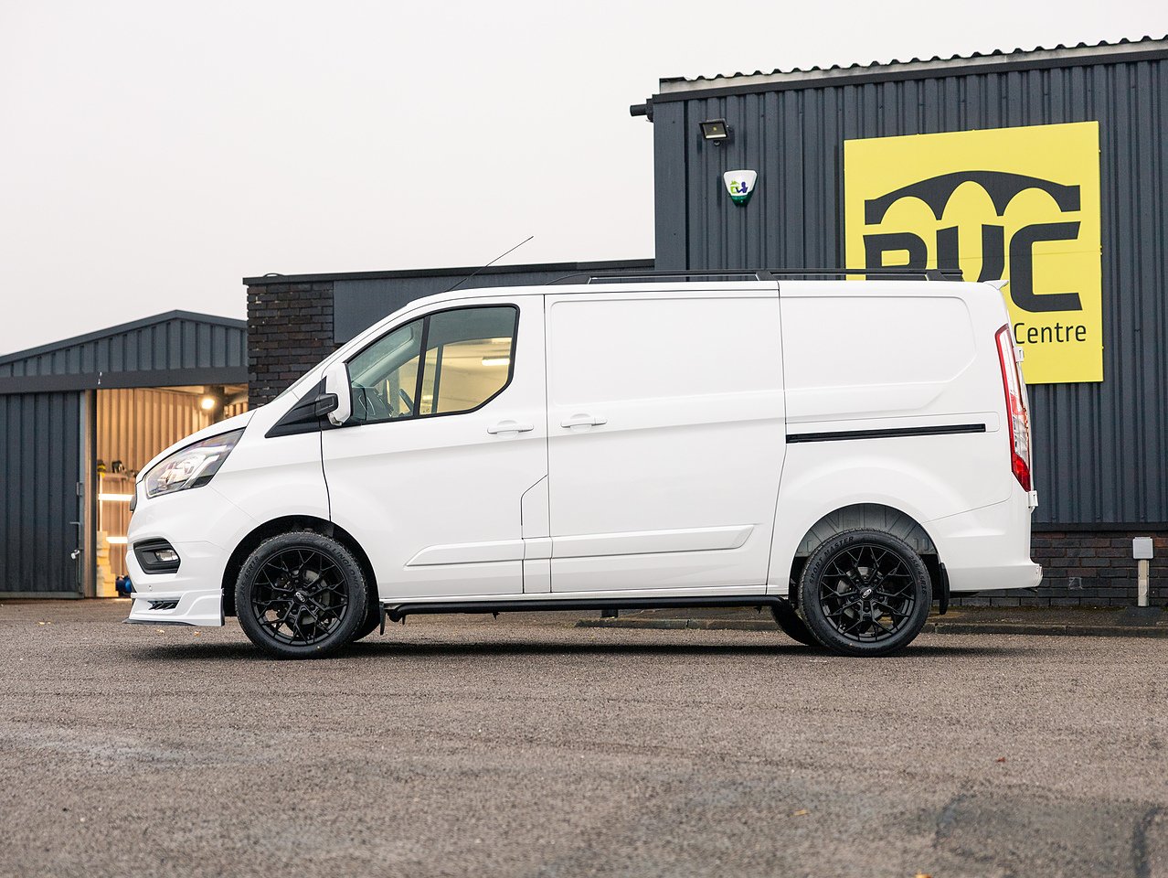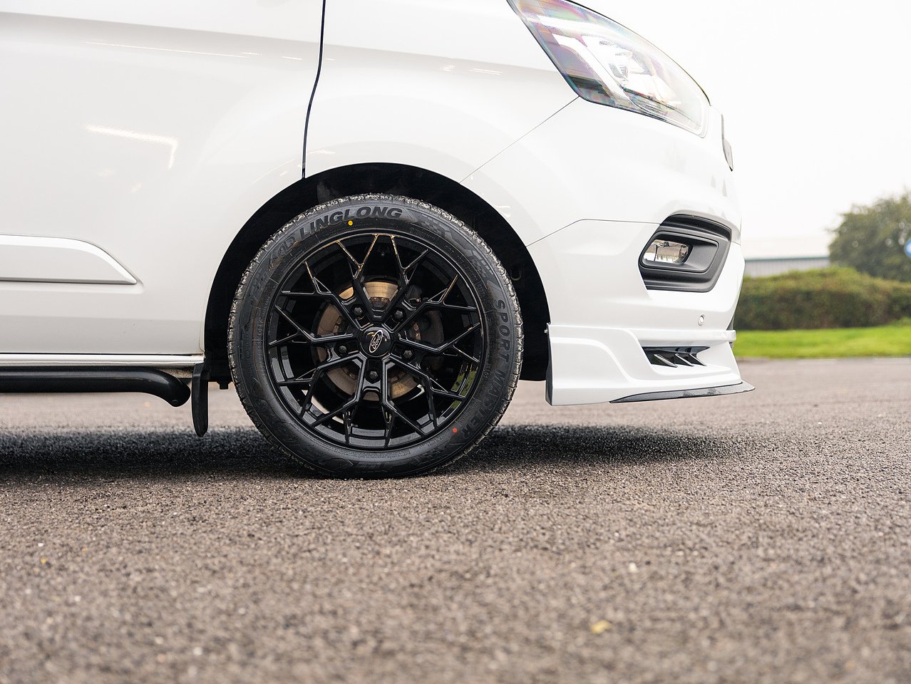 This particular Transit Custom is upgraded with new ply lining and our Signature styling kit, featuring side and roof bars, rear spoiler, front splitter, the distinctive Ford Trail grille and 18-inch gloss black alloy wheels.