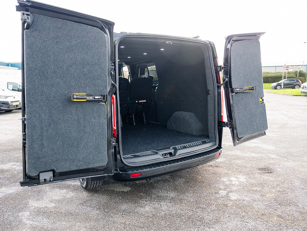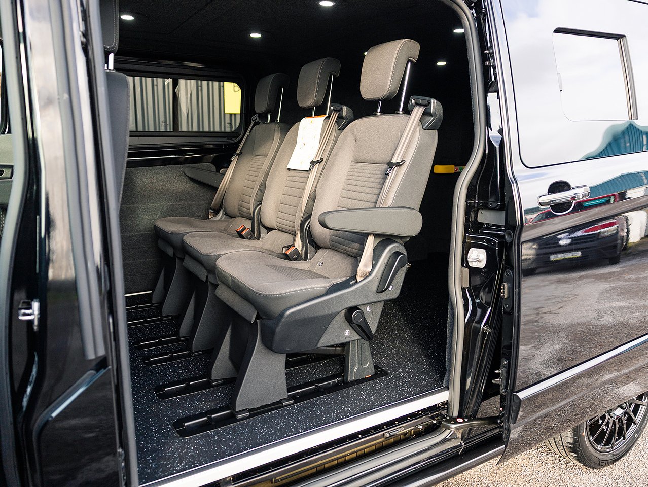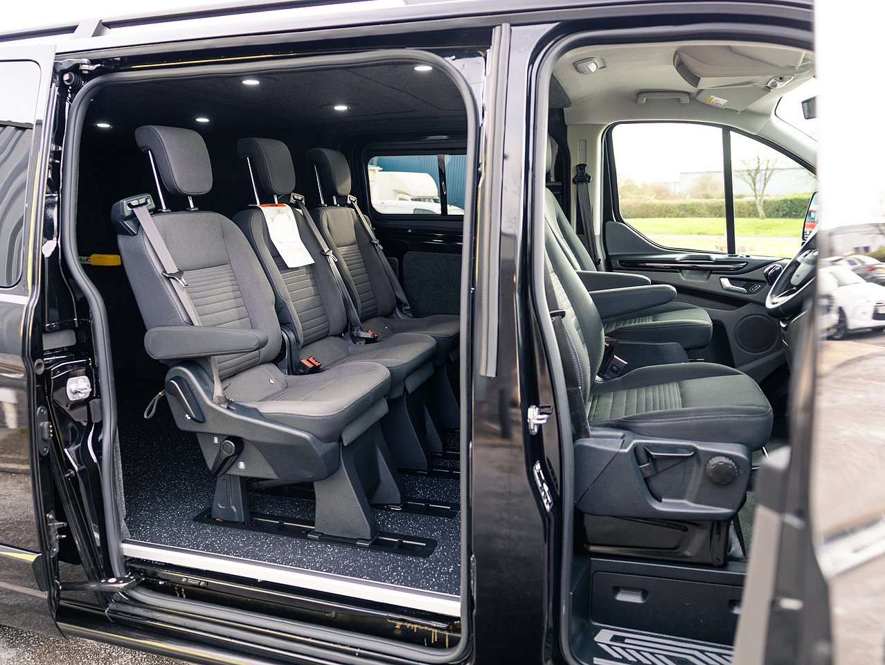 Inside, a professional Tourneo doublecab conversion provides a comfortable 5-seat layout, full carpet lining, black Altro non-slip flooring and a headlining with LED spotlights.