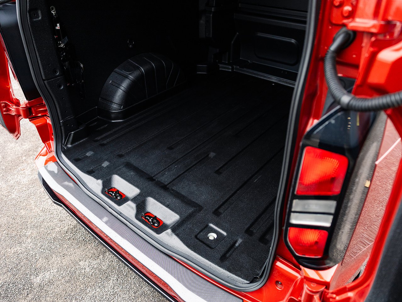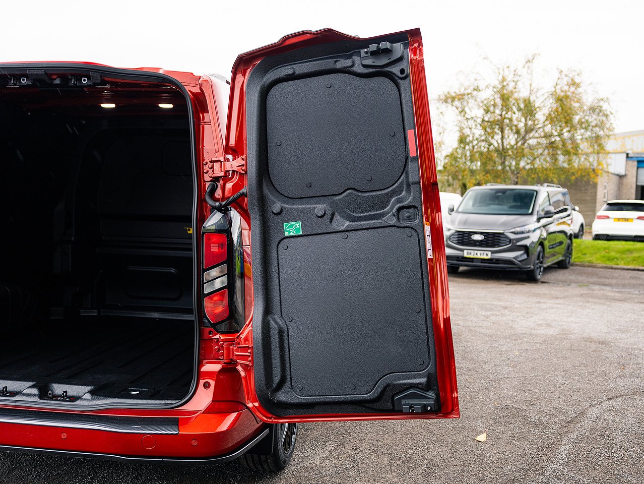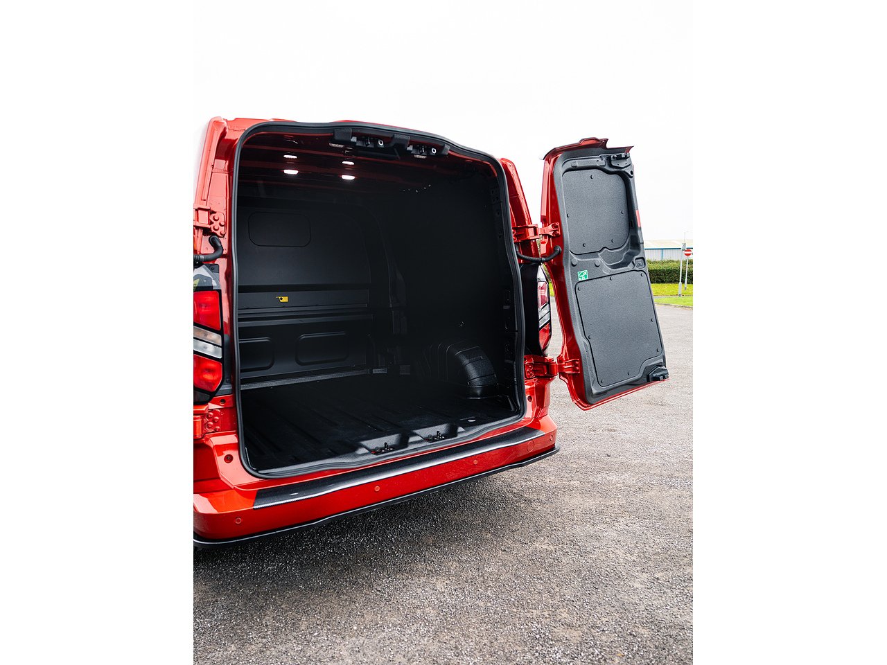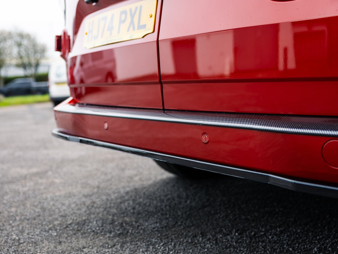 The exterior has been enhanced with a full styling kit including 20-inch gloss-black alloy wheels, a low-line aero kit with lower splitter, side skirts, rear spoiler and gloss-black front grille, giving this Transit Custom a premium, sporty look.