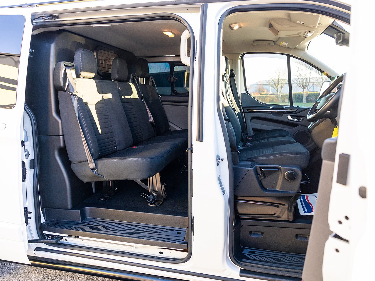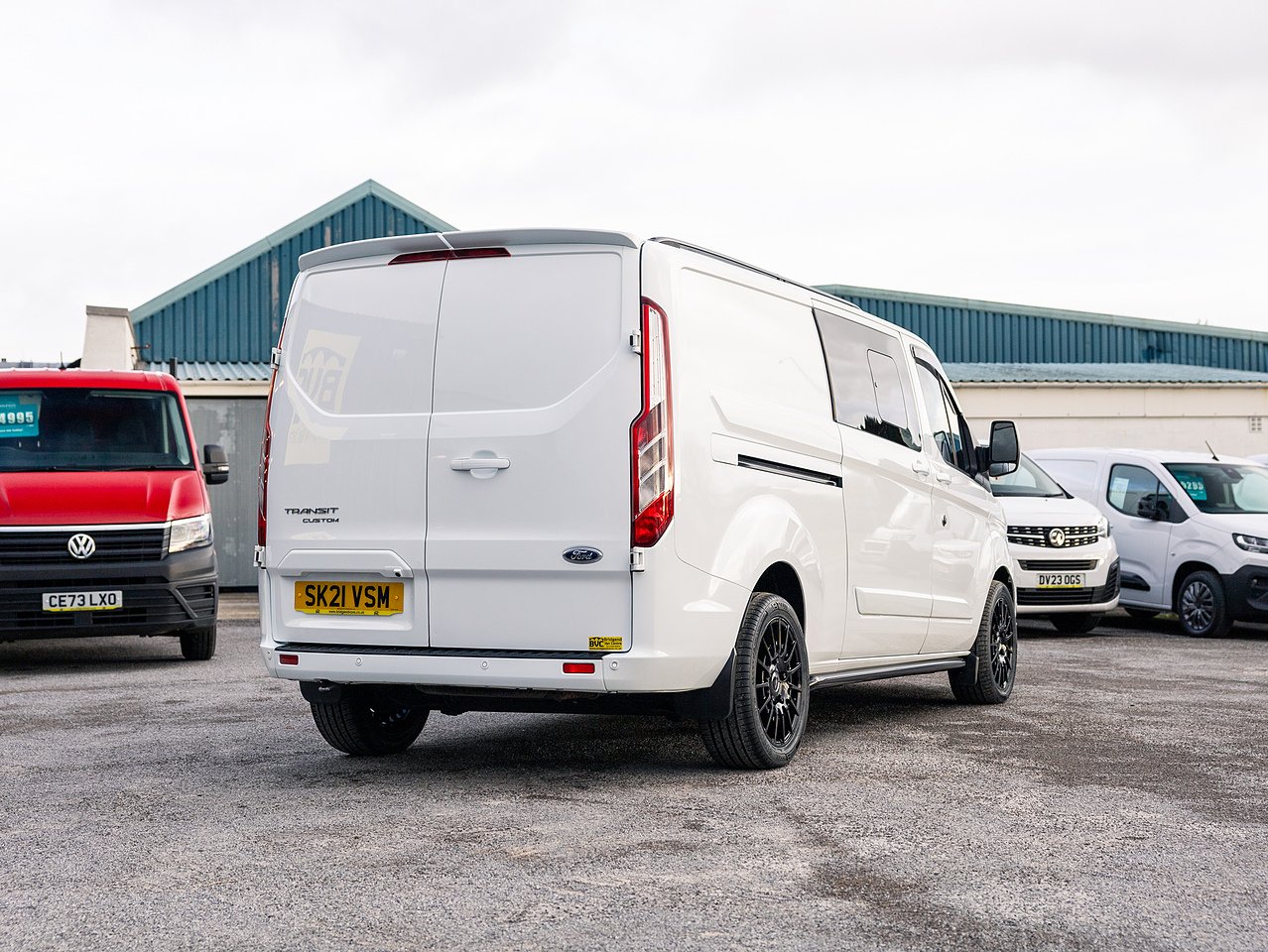 Now available is our 2021 Ford Transit Custom 320 2.0 EcoBlue 170 BHP Limited L2 LWB 6 Seat Doublecab Euro 6 Diesel Automatic Van. The Limited specification includes air conditioning, heated seats, heated windscreen, cruise control, parking sensors and infotainment system, making it well suited to daily use.