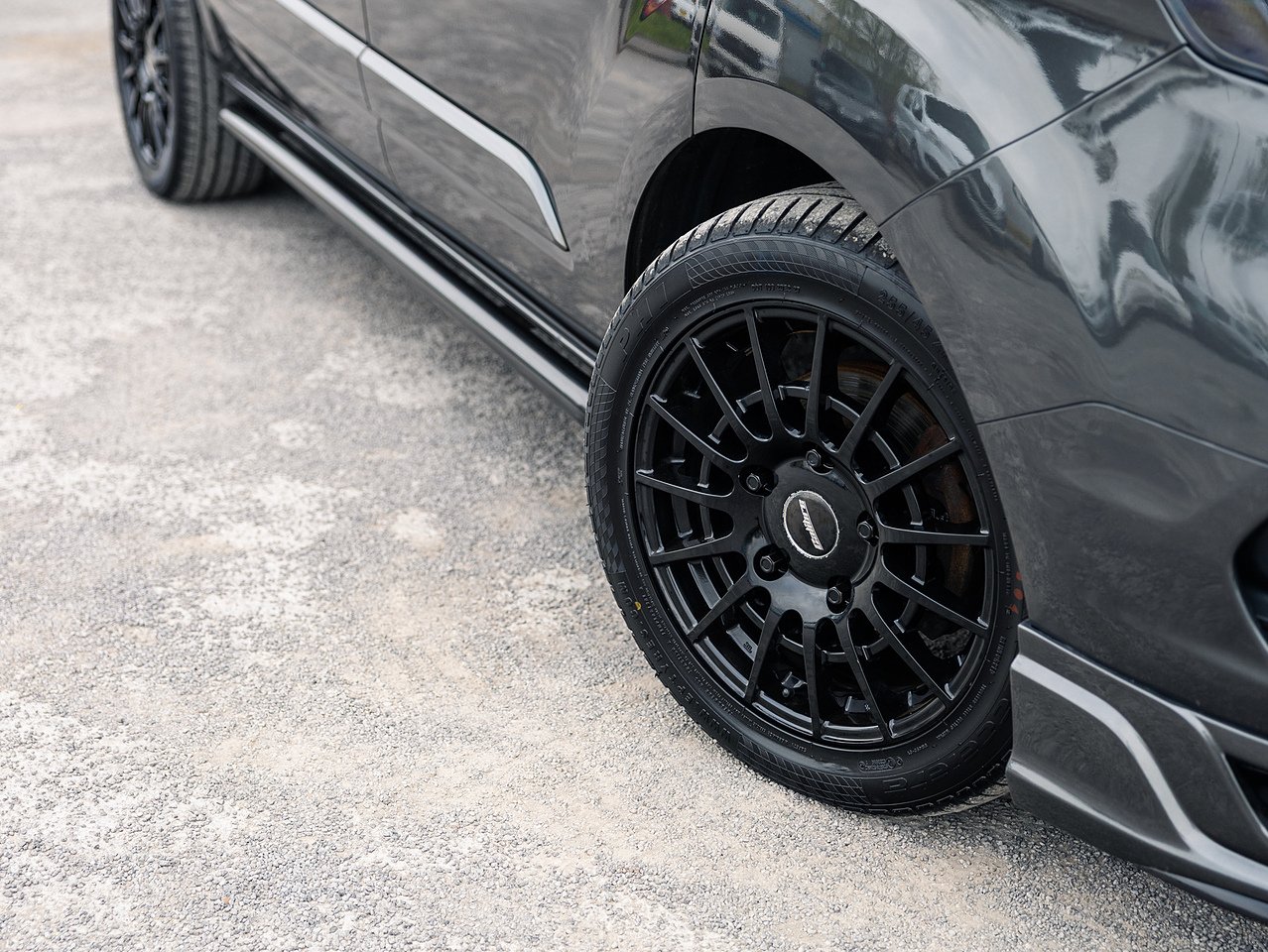 This van has been enhanced with our full Signature styling package, including front splitter, Ford Trail front grille, side bars, roof bars, rear spoiler and 18 inch gloss black Calibre T-Sport alloy wheels, giving it a distinctive and premium appearance.