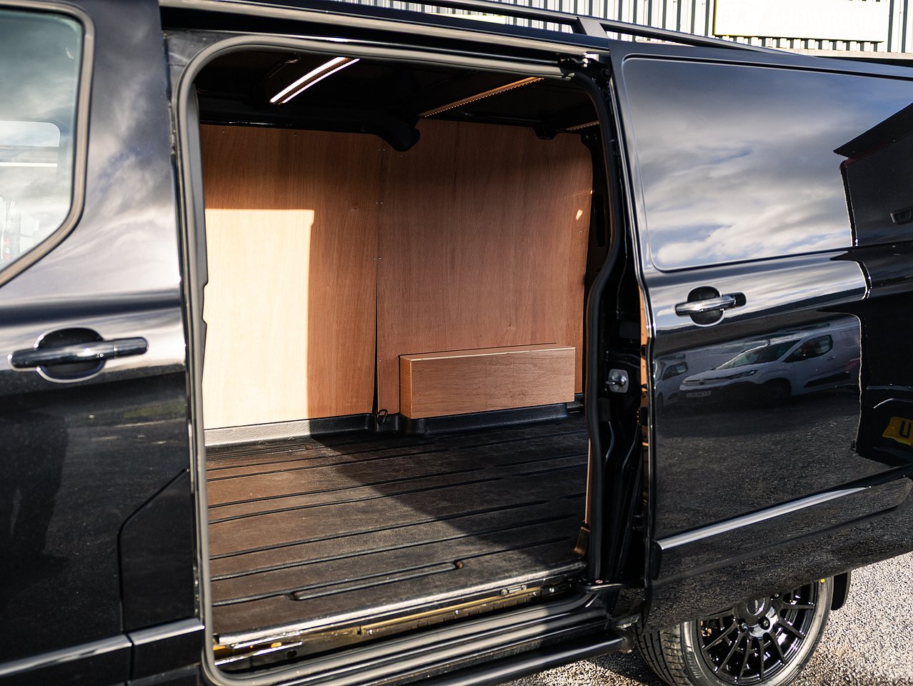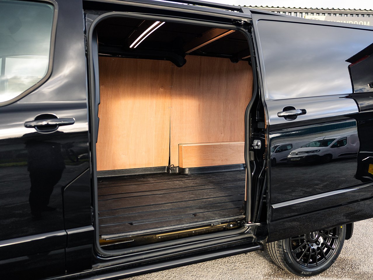 Our full Signature styling package enhances the look with a front splitter, Ford Trail front grille, side bars, roof bars, rear spoiler and 18-inch gloss black alloy wheels, giving this Transit Custom a premium and distinctive appearance.