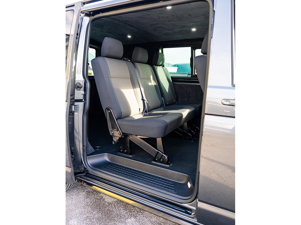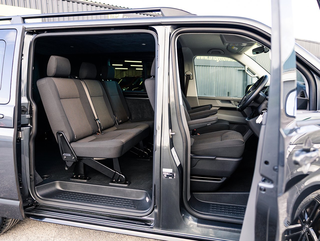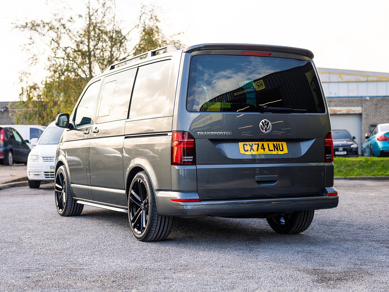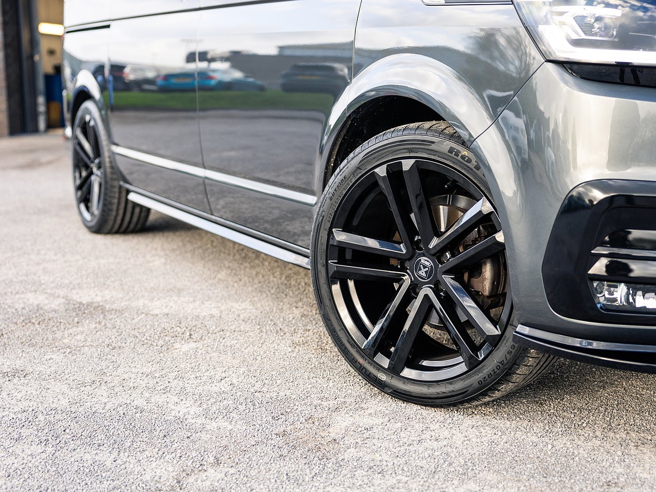 Styling upgrades include 20-inch gloss black Navis Twin-5 alloy wheels, 40mm lowering, carbon rear bumper protector, carpet lining with suede headlining, trapezoid side bars, roof bars, gloss black front grilles and front splitter, giving this Transporter a distinctive, high-quality appearance.